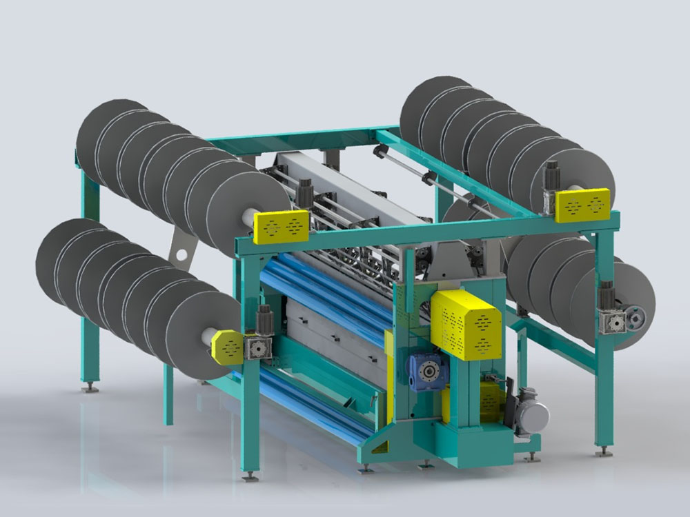 特点:采用压纱板机构,使布面更立体,,坯布尺寸更稳定,电子牵拉、电子送经、电子横移;
